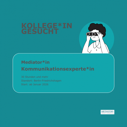 Das Team der MEDIATOR GmbH zeichnet sich durch langjährige Erfahrung aus: bereits seit 1992 organisieren und begleiten wir die Gestaltung komplexer Kommunikations-, Veränderungs- und Beteiligungsprozesse im öffentlichen Raum sowie in und zwischen Unternehmen und Organisationen in Deutschland, Österreich, Luxemburg und der Schweiz. Wir greifen auf einen großen Methodenkoffer zurück, dessen Inhalte wir situationsadäquat und -elastisch einzusetzen wissen.